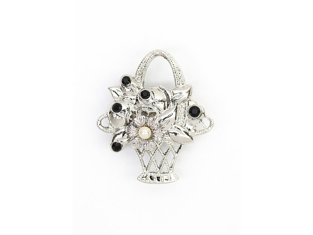 Brož Košík s kamínky na pinu, rhodium