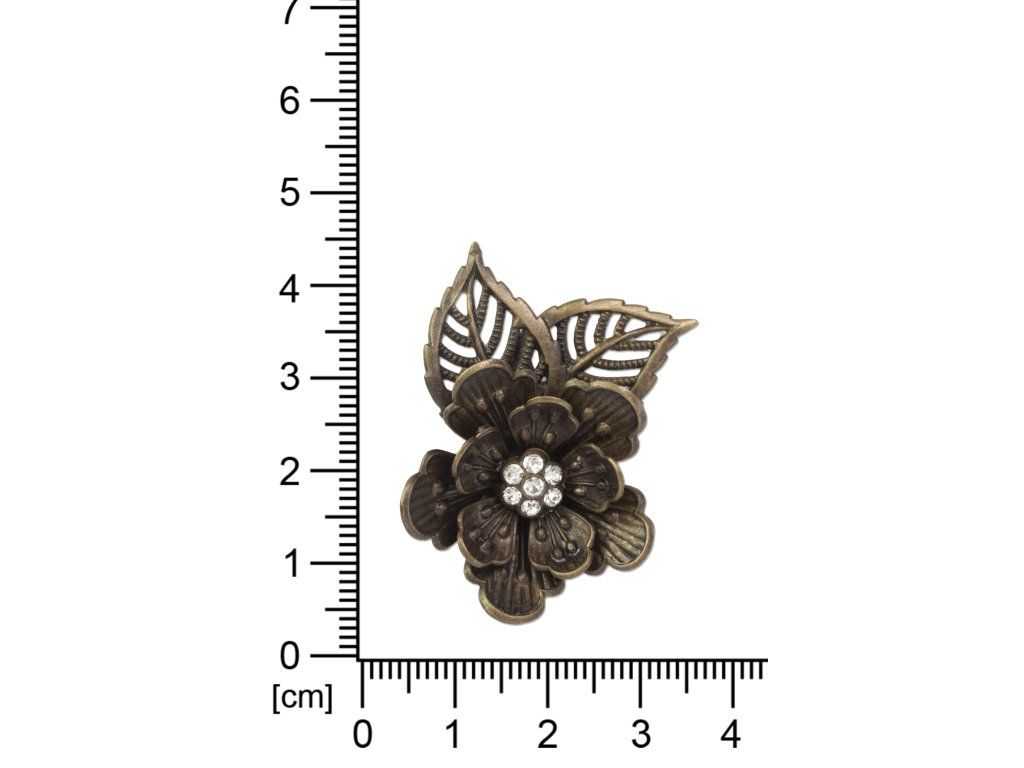 Materiál: tombak, povrchová úprava staromosaz, broušené šatony