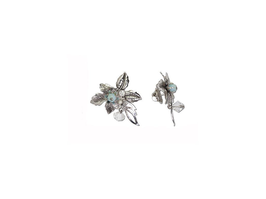 Materiál: tombak, povrchová úprava stříbro, broušené šatony, skleněné perličky
