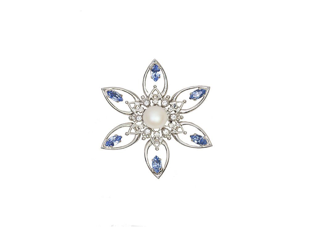 Brož Vánoční vločka s kameny a perličkou, rhodium
