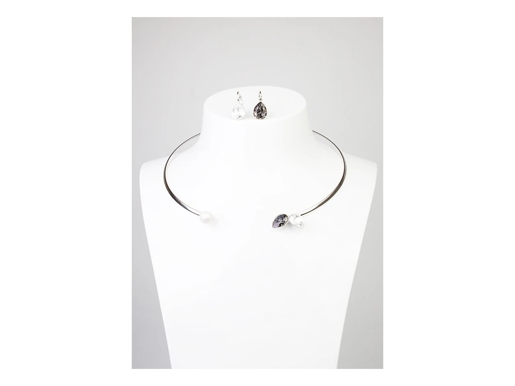 Náhrdelník s perlou + náušnice - rhodium