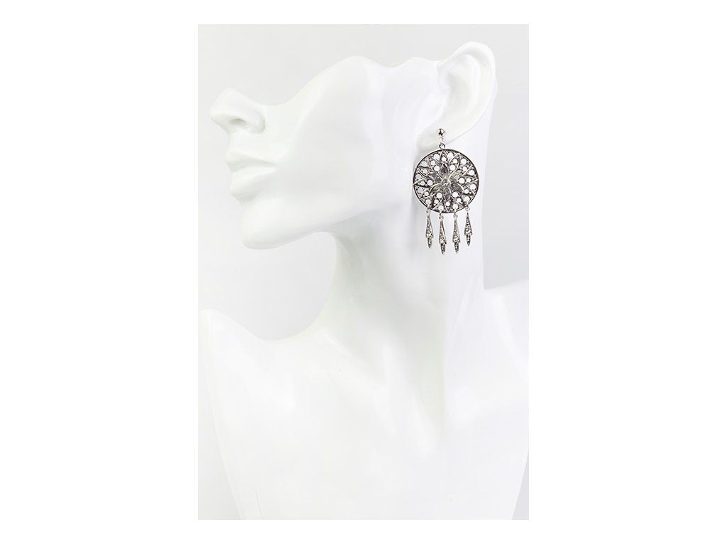 Náušnice filigránové velké s kameny - rhodium