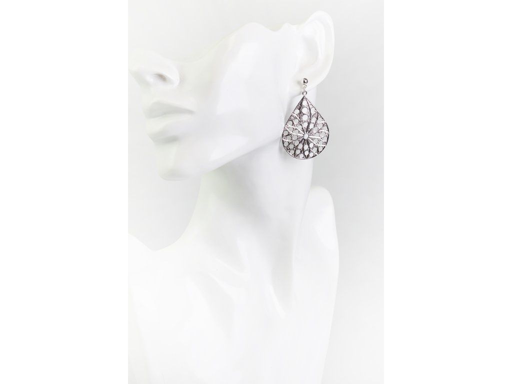 Náušnice slza, puzeta - rhodium