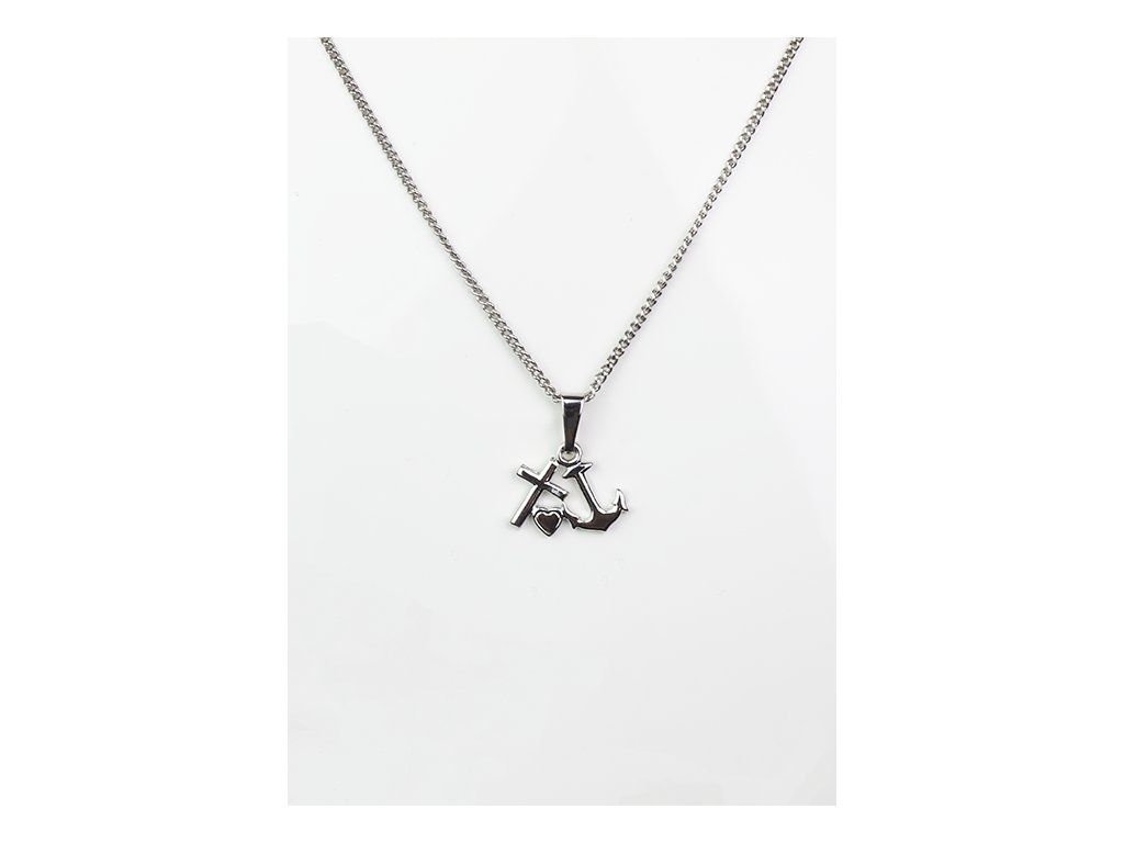 Přívěsek křížek,srdíčko a kotva (láska, víra, naděje) s řetízkem - rhodium