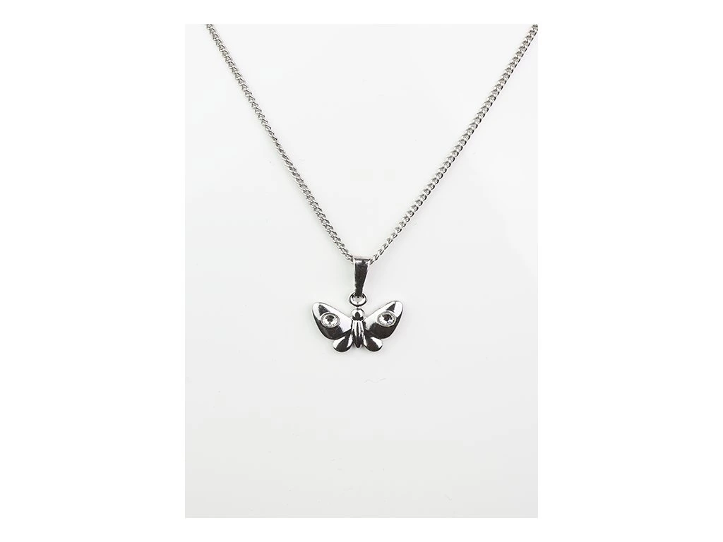 Přívěsek motýlek s kamínkem a s nerez řetízkem - rhodium