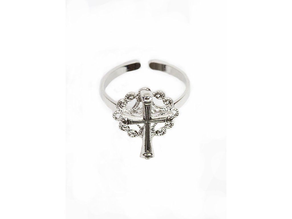 Prstýnek s křížkem - rhodium